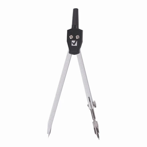 Циркуль длиной 135 мм имеет одну сгибаемую штангу. Изготовлен из металла, дополнительный цвет элементов - черный.