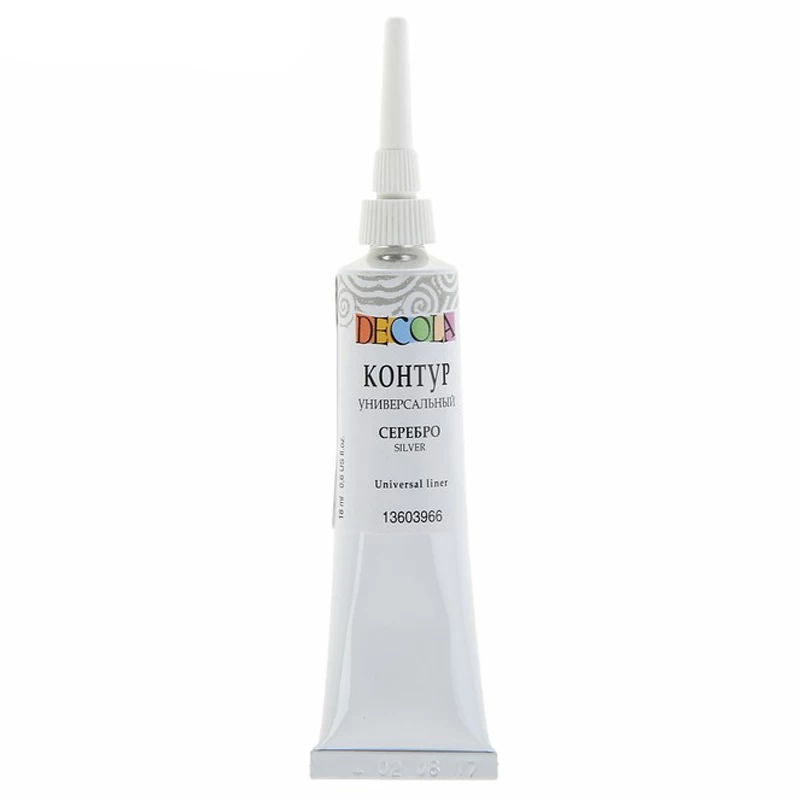 Один контур поможет создать устойчивые к смыванию узоры и рисунки на многих поверхностях: стекле, фарфоре, металле, пластике и пр. Отличительная особенность универсального контура Decola - он дает небольшую усадку, оставляя рельефный узор. Период полного высыхания от 12 до 24 часов, в зависимости от толщины нанесения контура.