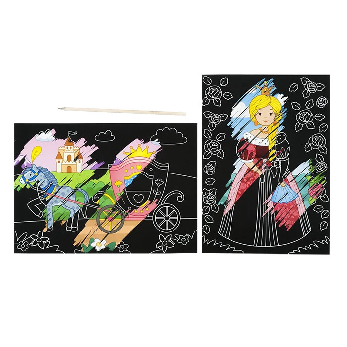 Гравюра – спрятанный за верхним слоем с контурами яркий, красивый рисунок, который ребенок должен полностью открыть, соскребая верхний слой при помощи безопасной деревянной палочки – штихеля. Все дети обожают открывать тайны, исследовать неизвестное, и гравюры дают прекрасную возможность для такой игры.
