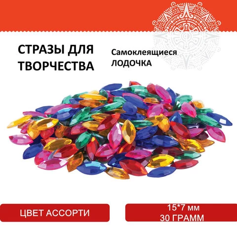 Стразы самоклеящиеся "Лодочка", 15х7 мм, 30 г, 5 цветов, ОСТРОВ СОКРОВИЩ