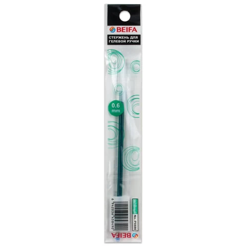 Стержень гелевый BEIFA (Бэйфа), 135 мм, ЗЕЛЕНЫЙ, 0,8 мм, линия письма 0,6 мм, подвес