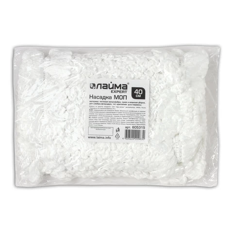 Моп имеет форму плоского прямоугольника, такая форма и чистящая поверхность из ворса длиной 3 см позволяет удобно собрать грязь по углам и захватить большую площадь убираемой поверхности, что в свою очередь уменьшает временные затраты на уборку больших площадей. Устойчива к износу, что обеспечивает долгий срок службы уборочного инструмента. Выполнена из микрофибры, имеет размер 40х14 см. Выдерживает до 300 циклов стирки. Максимальный объем впитывания - 450 мл.