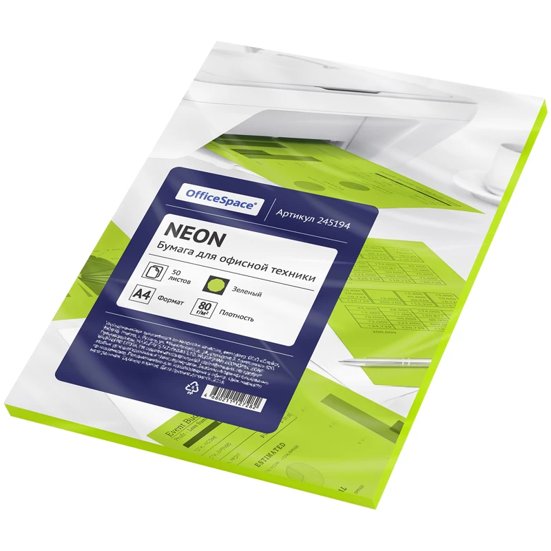 Бумага цветная OfficeSpace neon А4, 80г/м2, 50л. (оранжевый)Код 673635