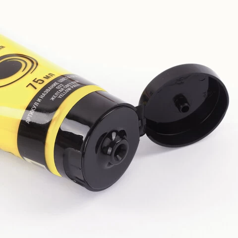 Краска насыщенного светлого желтого цвета с легким глянцем. Быстрое высыхание без изменения цвета. Отличная укрывистость и светостойкость. Прекрасно смешивается. Благодаря высокой покрывающей способности для достижения оптимального эффекта достаточно нанести всего один слой краски. Разбавляется водой. Температурные пределы транспортирования и хранения - не ниже 0 градусов. Удобный дозировочный клапан. Не токсична и не имеет неприятного резкого запаха. Поставляется в пластиковой тубе объемом 75 мл.