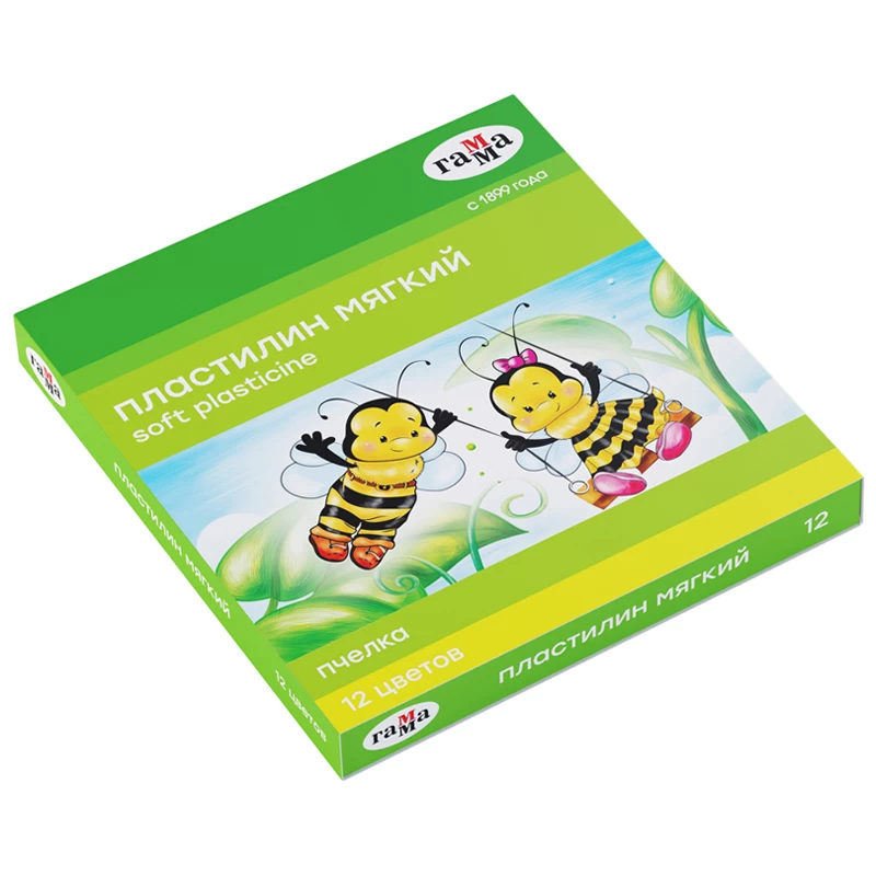 Пластилин Гамма "Пчелка", 12 цветов, восковой, со стеком, картон, европодвес