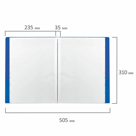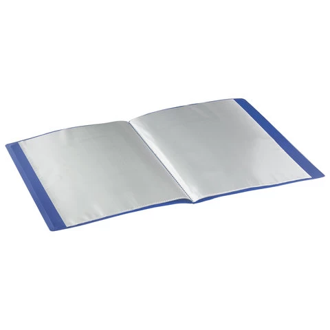 Для маркировки содержимого на корешок наклеена этикетка. Папка изготовлена из качественного пластика толщиной 0,6 мм с антибликовой фактурой, а ширина корешка составляет 25 мм. Содержит 60 вкладышей, позволяющих хранить документы формата А4 и обеспечивающих их нажежную защиту от попадания влаги, пыли и прочих повреждений.
