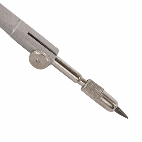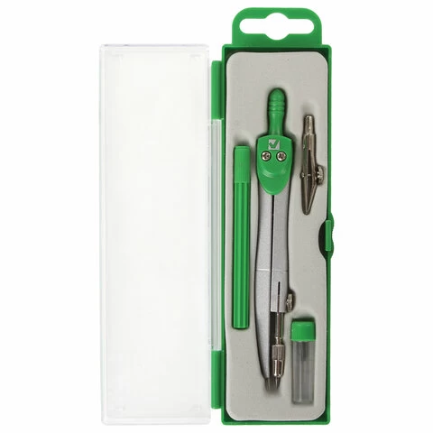 Комплектация: пенал с запасным грифелем, рейсфедерная вставка и держатель, циркуль
