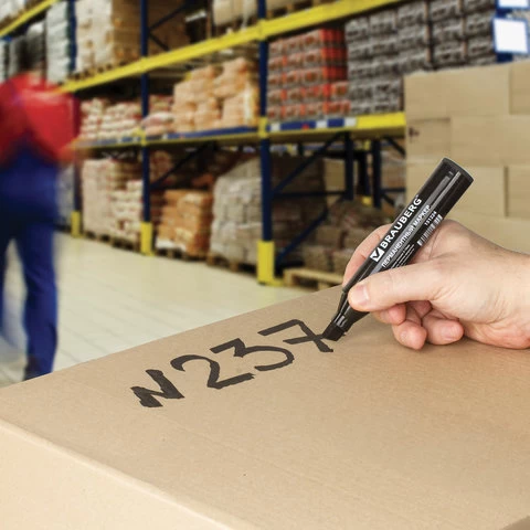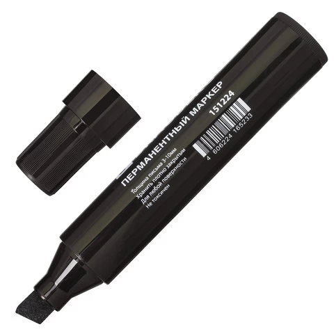 Маркер перманентный черного цвета обладает круглой формой корпуса из пластика, диаметр которого 26 мм. Толщина линии письма - 3-10 мм в зависимости от угла наклона. Особая нестираемая основа перманентного маркера обеспечивает такие качества, как стойкость к воздействию воды, ультрафиолета, низких и высоких температур. Благодаря спиртовой основе чернила быстро сохнут и не смазываются. Износостойкий фетровый наконечник устойчив к повреждениям и обеспечивает экономный расход чернил. Изделие не перезаправляется. Плотно закрывается колпачком, что предотвращает высыхание наконечника и чернил. Цвет корпуса и колпачка соответствует цвету чернил.