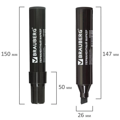 Маркер перм. Брауберг "JUMBO", скошенный,черный 3-10 мм