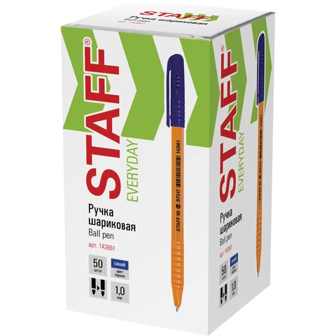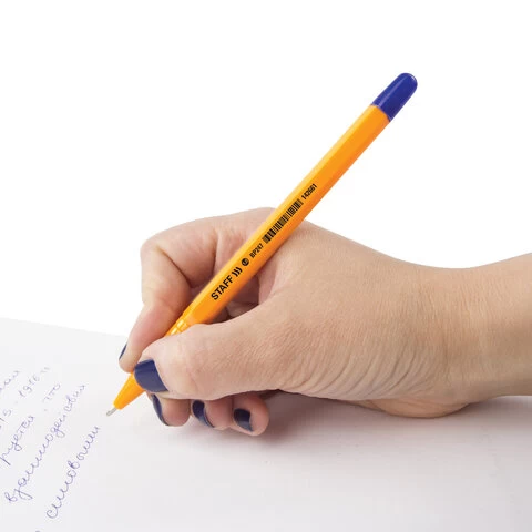 Ручка Стафф "EVERYDAY", синяя,шестигранная, корпус оранжевый