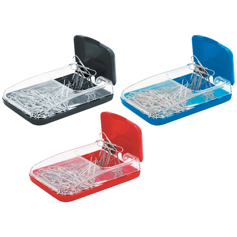 Скрепочница Брауберг 100цв. скрепок 28 мм, прозрачный корпус, черная крышкаМоя корзина