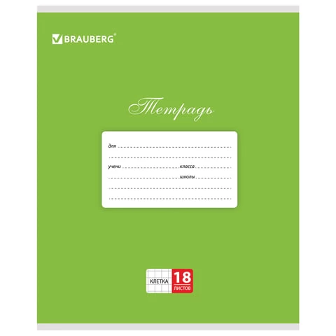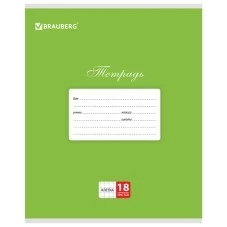 Тетрадь 18 л. клетка, BRAUBERG КЛАССИКА, обложка картон, ЗЕЛЕНАЯ