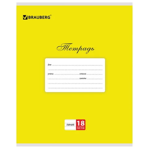 Тетрадь 18 л. линия, BRAUBERG КЛАССИКА, обложка картон, ЖЕЛТАЯ